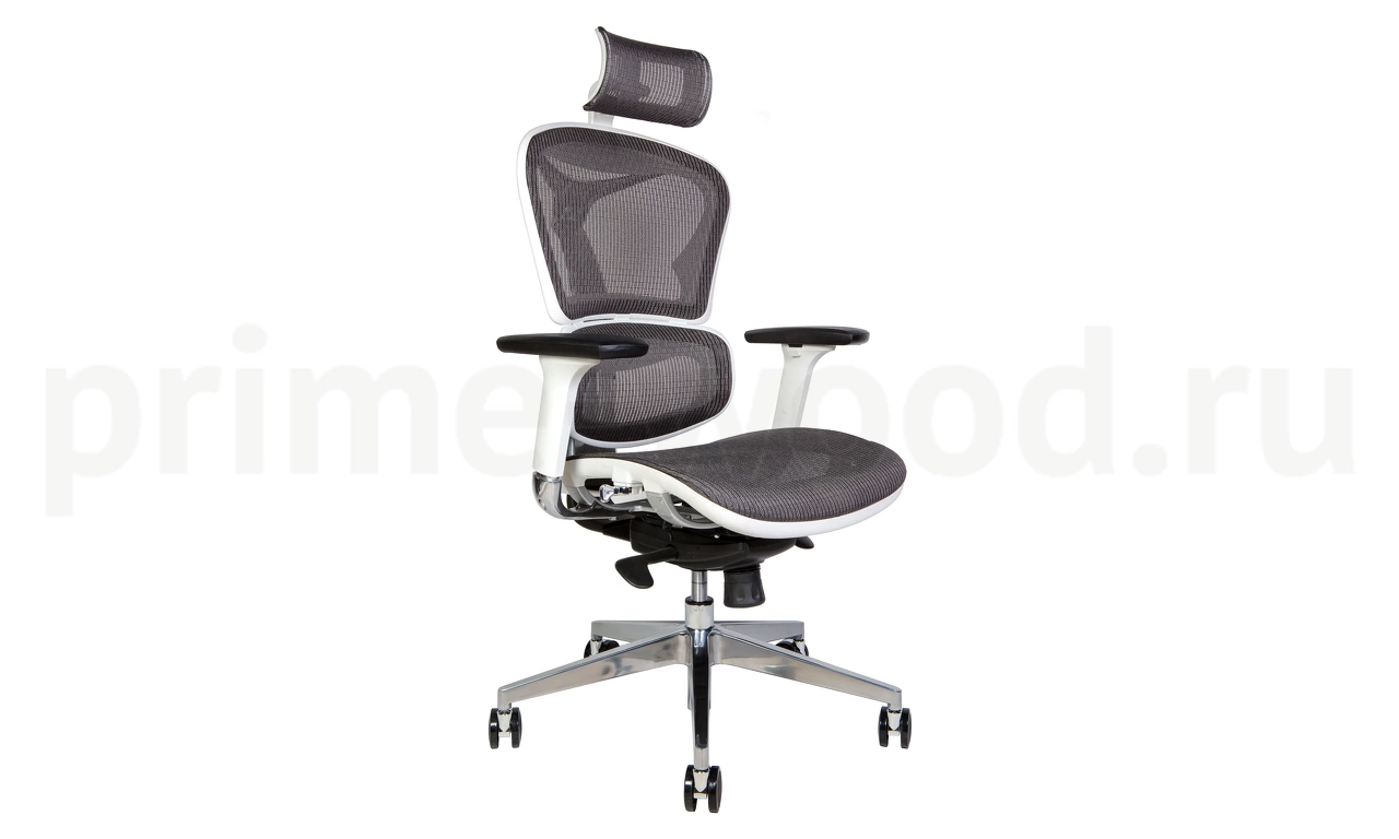 Белый пластик / серая ткань