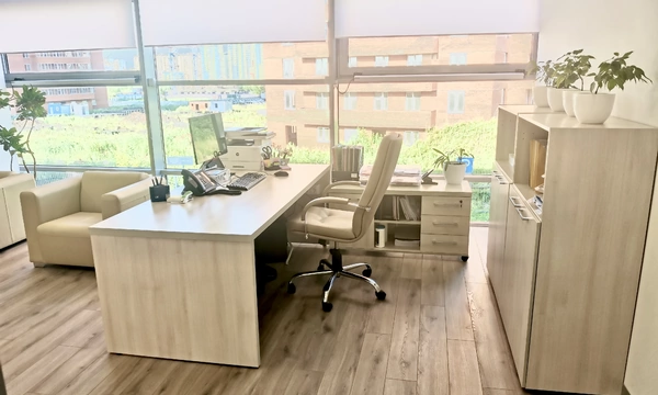 Перед нами стояла задача подобрать "простую, строгую, светлую" мебель, в достаточно ограниченном бюджете. После переговоров выбор пал на коллекцию мебели Вектор, лаконичный строгий дизайн, массивная столешница 48мм и очень приятный ценник стали решающими факторами. Следом нами был разработан дизайн-проект с учетом пожеланий заказчика. В результате мы получили зону работы секретаря в едином стиле с местами для хранения документов и диванчиками для ожидающих, из которой посетитель кабинета попадает в большую переговорную, совмещенную с кабинетом руководителя. Всё, как хотел заказчик.