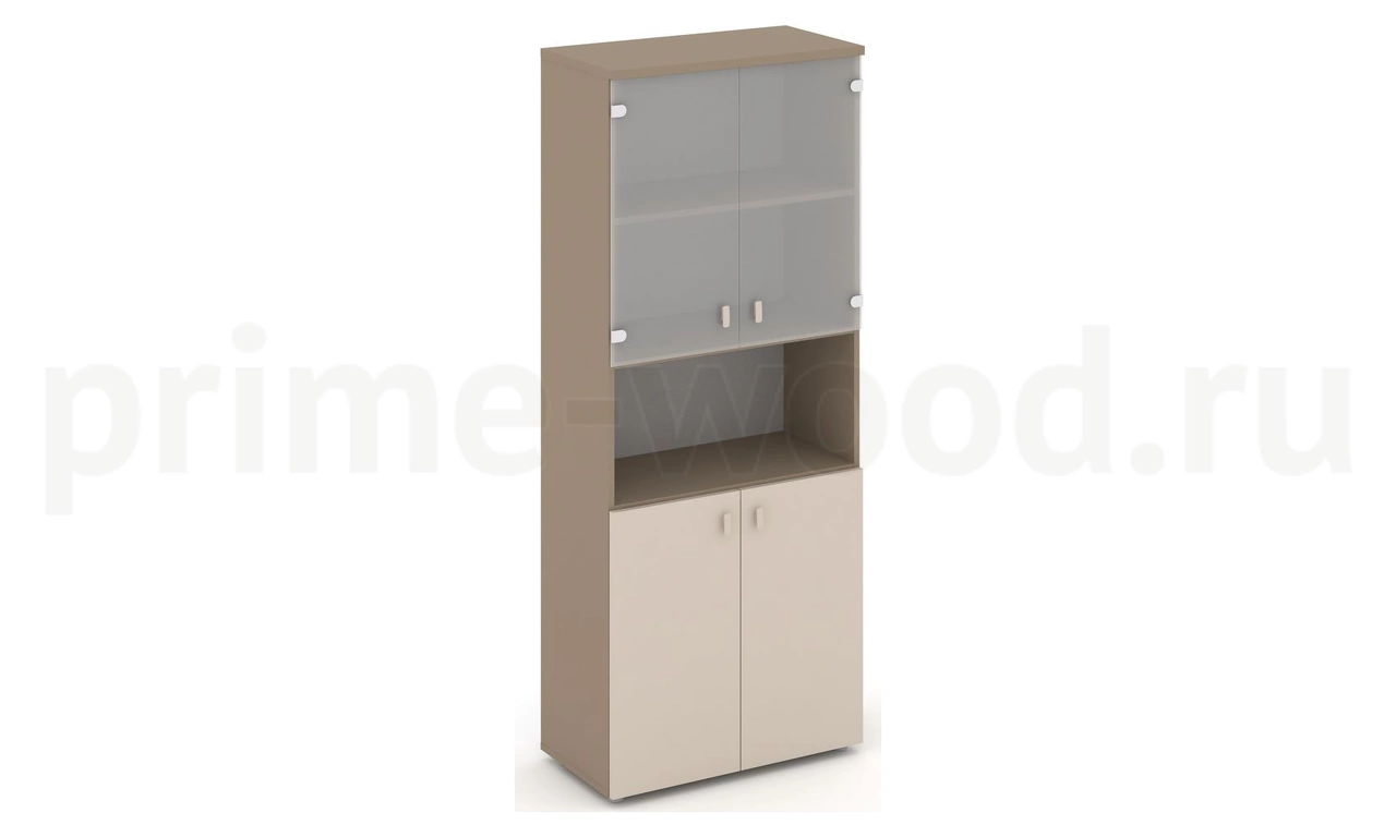Шкаф высокий широкий (2 низких фасада ЛДСП + 2 низких фасада стекло сатин матовый)