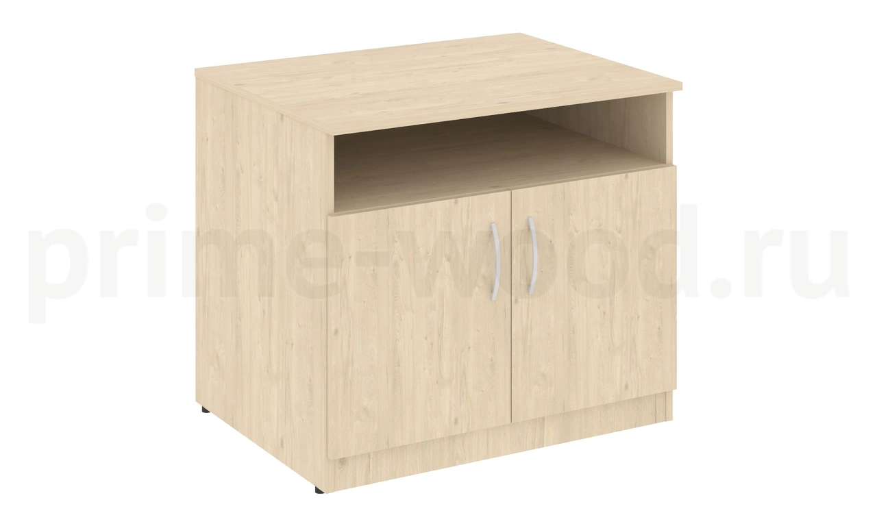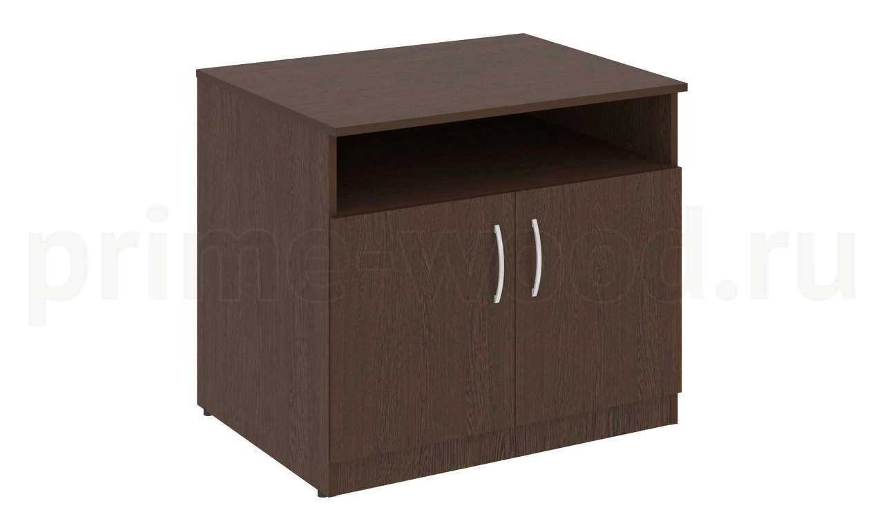 Тумба под оргтехнику сервисная имеет два вместительных отделения, закрытых глухой дверцей, и открытую полку в верхней части. Размеры изделия: 77х60х68 см. Доступные цвета: «Бук Артизан», «Венге», «Орех Гварнери». Фурнитура металлическая. Тумба под оргтехнику сервисная подходит к Шкафу высокому широкому В.СТ-1.2